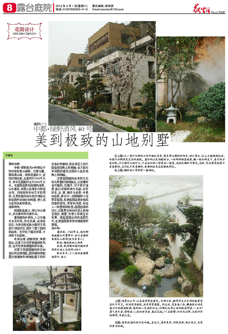 职业专长:个人顶级庭园营造设计、施工